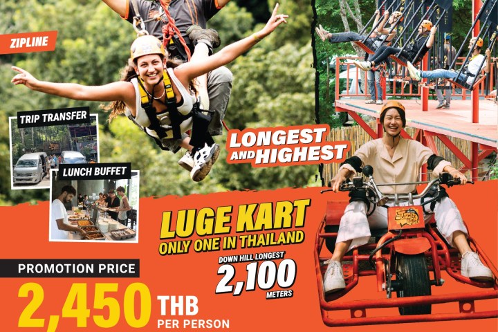 The Extreme package offers the most complete adventure at Skyline Jungle Luge, including Thailand’s longest zipline, luge kart racing down a 2,100-meter hill, and the exclusive Big Giant Swings. The package includes round-trip transfer, Thai buffet, tea, and coffee, ensuring a thrilling yet comfortable experience in Chiang Mai’s lush jungle.